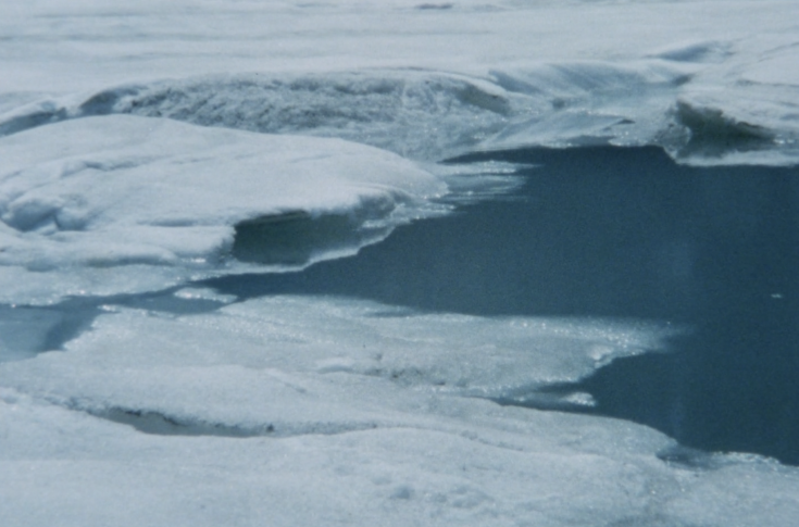 De film begint in de diepe duisternis, waar vage streepjes gereflecteerd licht de contouren van grotwanden en grillige rotsranden onthullen. Langzaam komen we tevoorschijn uit dit sluimerende schaduwspel en worden we begroet door warm cyaankleurige beelden van smeltend ijs en met sneeuw bedekte bergen – landschappen die zachtjes lijken te zingen over een naderende lente.