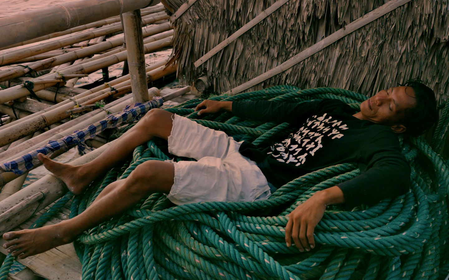 Krakatoa is a hybrid film – partially speculative fiction and partially documentary – that follows a sonic narrative and interweaves abstract scientific imaging. It begins from a sonic reconstruction of the 1883 eruption of Krakatoa, and mixes it with an account from a survivor of its last eruption in 2018. The film explores the sensorial possibilities of film as medium and seeks to bring the audience closer to our surrounding ecologies through abstract audiovisual embodiment. The film follows the last day of Kesuma, a young Bagan fisherman who lives on a bamboo fishing platform near Krakatoa. Seeking food and water following an eruption, he descends into a hallucinatory journey through geological eras, lava rivers, and abstraction itself.